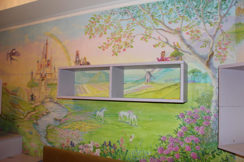 7. Обязательно на стене должны находиться полочки: стеклянные или деревянные. На них девочки смогут поставить свои фото и самые любимые игрушки.