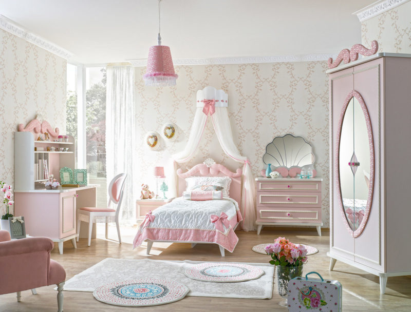То, что данное помещение должно быть предназначено для девочек, является важным критерием при выборе оформления. Практически всегда приветствуется наличие поделок ручной работы, подушек абсолютно разных размеров и цветов, мягких игрушек, фотографий в оригинальных рамках и постеров.