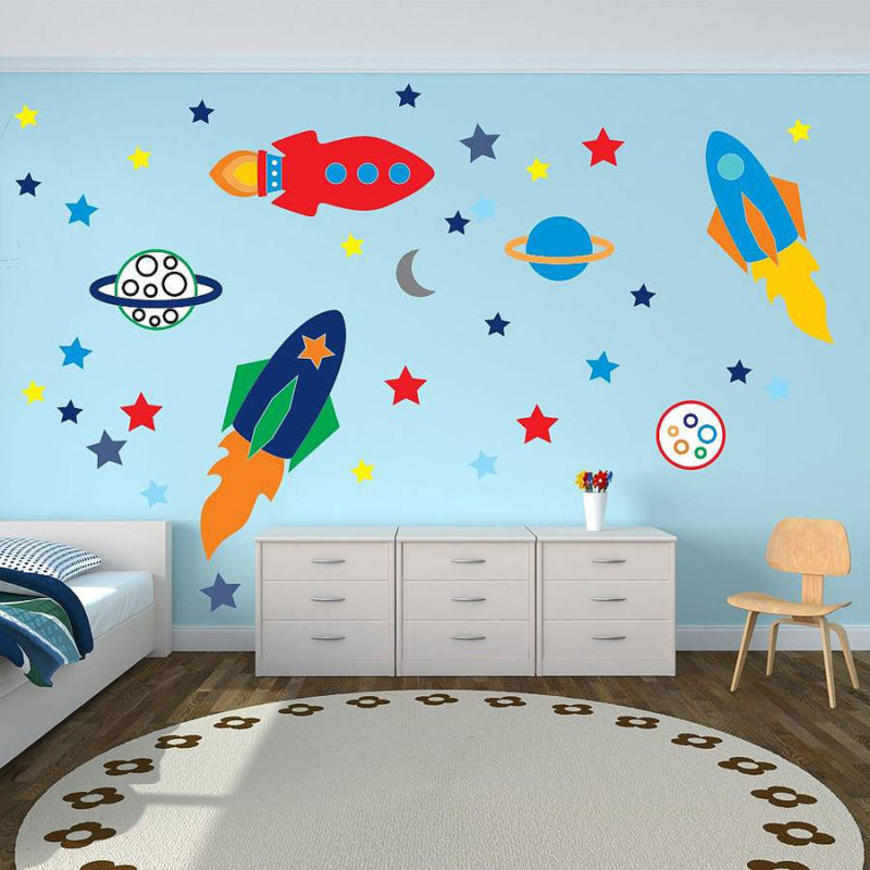 Попробуйте нарисовать над кроватью ребенка забавный сюжет из полюбившегося мультфильма или вырезать и прикрепить на стену силуэты героев детских сказок. Малыш точно оценит ваши старания. Тем более что для этого не понадобится много времени, и подойдут обычные фломастеры, краски и трафареты.