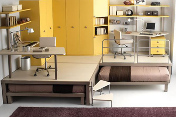 Сэкономить пространство без вреда для здоровья подростка поможет откидная или выдвижная кровать. Можно использовать и кровать-чердак.