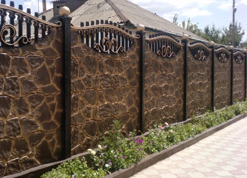 • Комбинированные. Данный вид имеет все плюсы глухих и открытых ограждений. Конструкция ажурна, но при этом для людей полностью закрыт обзор.