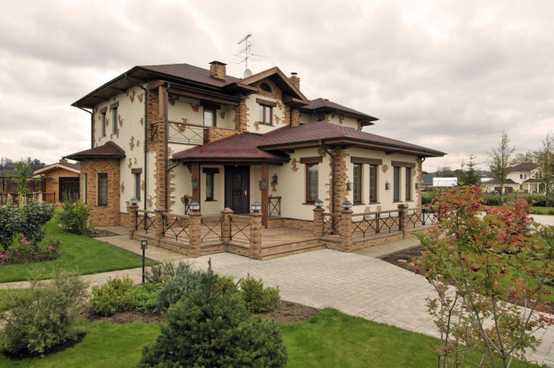 4. Большой выбор цветовой гаммы, толщины и формы материала позволяет подобрать необходимый вариант к экстерьеру дома.