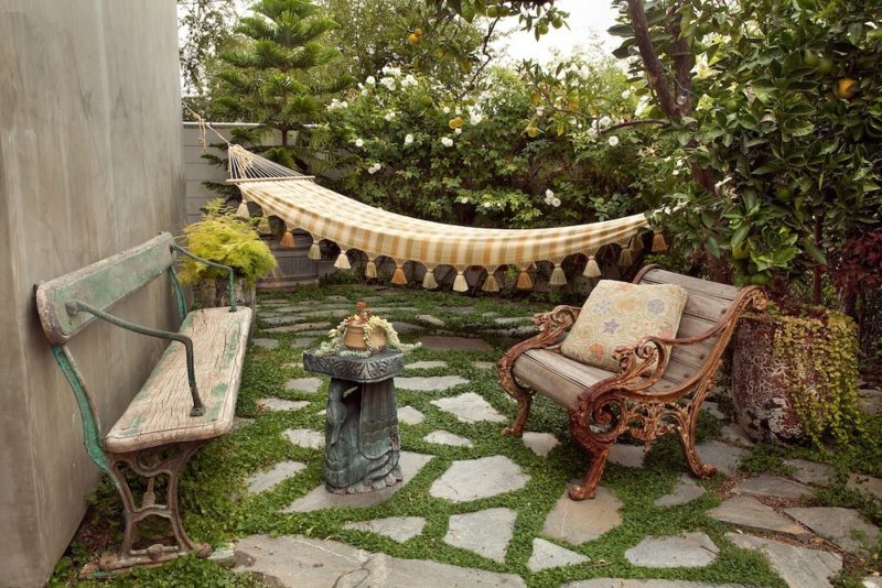 Самым подходящим узором является цветочный, особенно если рисунок набивной — способствует единению с природой. Не подходят — полоски или геометрический рисунок.