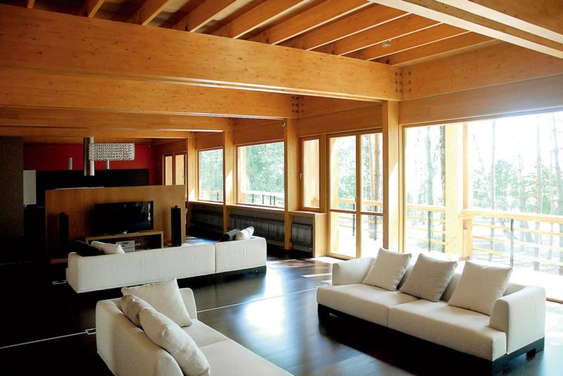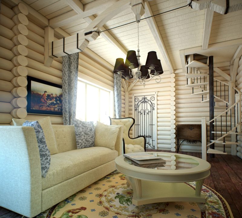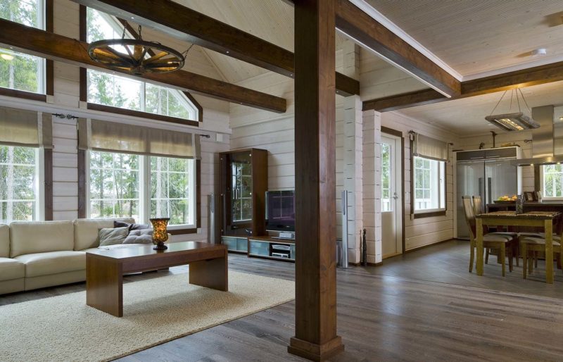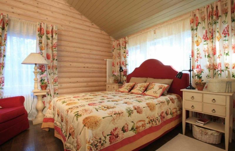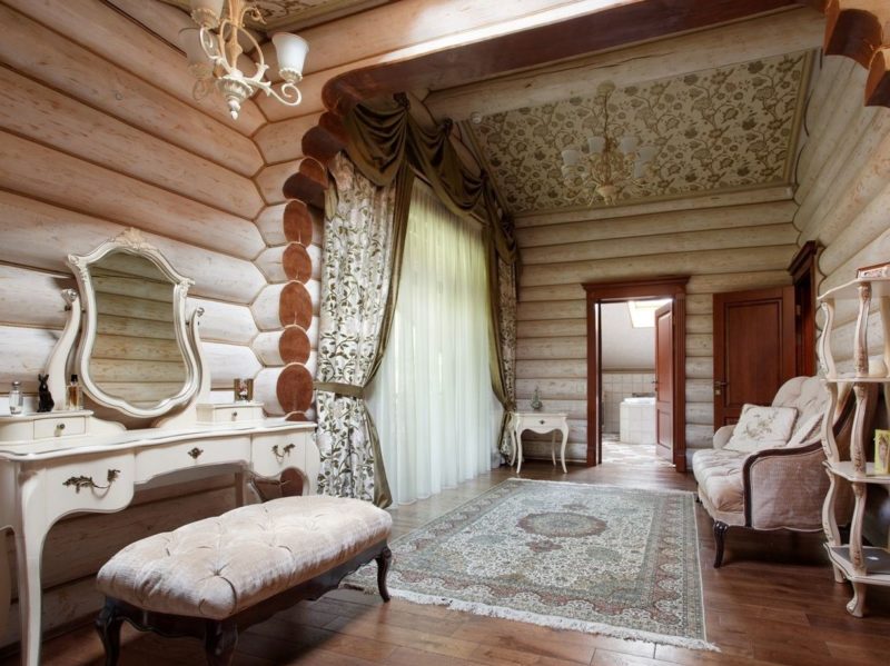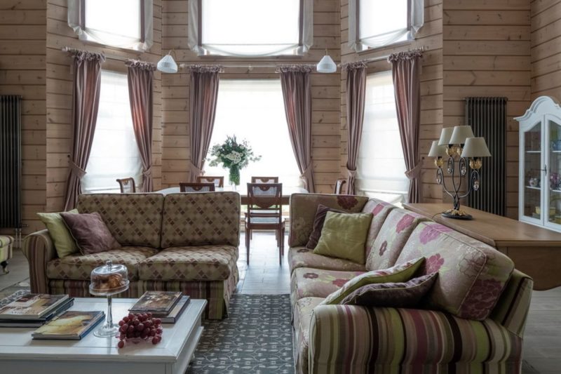 Деревянный дом: дизайн шторами