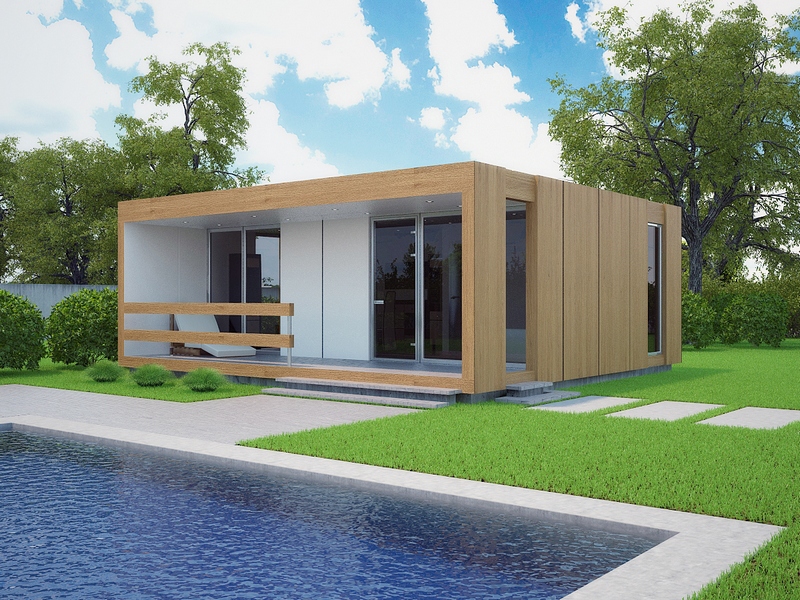 Такая кровля смотрится несколько тяжеловато, поэтому дизайнеры советуют использовать её только на фоне такой же кровли основного здания. Материал очень прочный, вариантов цветового оформления масса. На вид металлочерепица кажется тяжёлой, хотя на самом деле она лёгкая. Обладает длительным сроком эксплуатации.