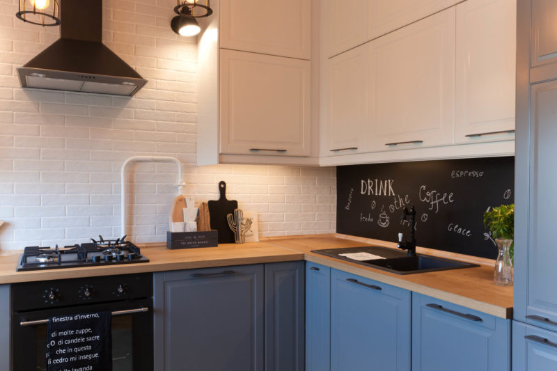 Классические материалы лофтовых стен (кирпич, бетон и штукатурка) не подходят для кухонного помещения по уровню гигиеничности, т.к. впитывают все запахи и жир. Оптимальный вариант – отделка керамогранитом или клинкерной плиткой под кирпич.