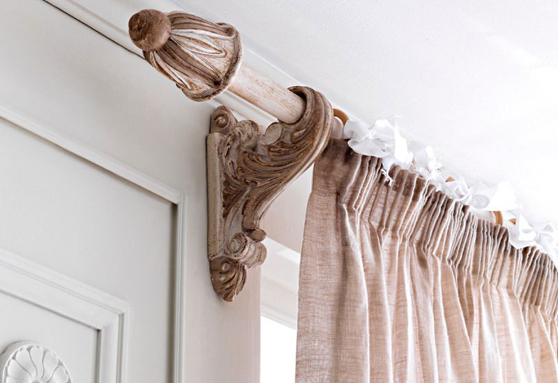 • Потёртый шик — плотные, но легкие ткани с небольшой потертостью. Предполагают многослойность, ламбрекены и элементы разной длины.