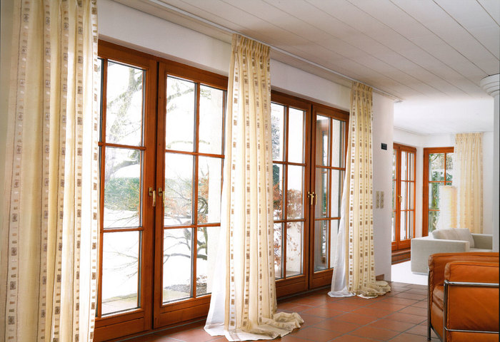 Такие модели также станут идеальным вариантом, если окна уже оформлены текстилем. Роллеты на створках не будут мешать обычным занавесям, но защитят ткань от воздействия солнечного света.