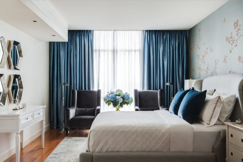 Дизайн штор должен отвечать основному правилу, заключающемуся в том, что по цвету они обязаны быть темнее либо светлее стен. В основе современных образов лежит легкость, а значит, внимание нужно обратить на светлые, прозрачные варианты. Массивные с роскошными элементами декора подойдут при наличии мебели эпохи: