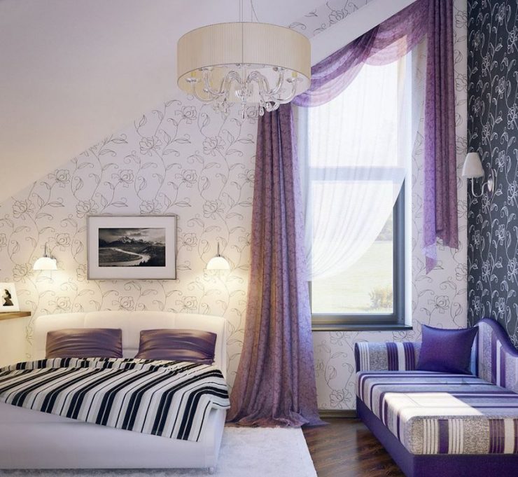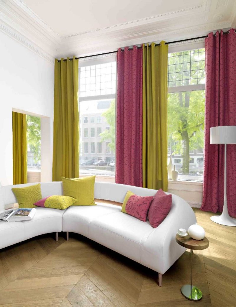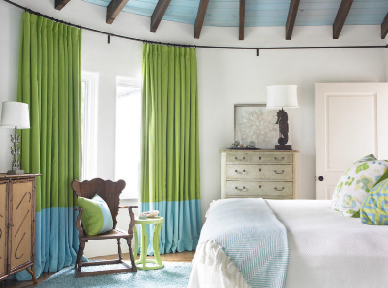 Эти изделия относятся к тем деталям интерьера, которые можно применять в контрастах. Так, яркая занавеска различного оттенка добавит светлой спальне жизненных красок. Отлично выглядит контрастное сочетание штор и стен: