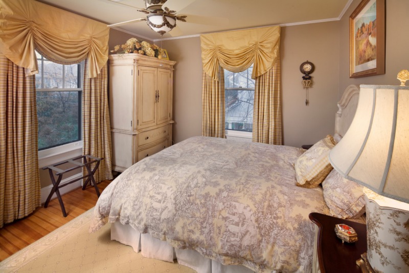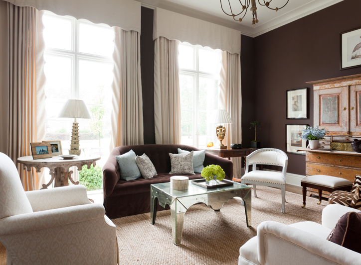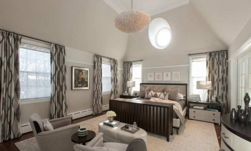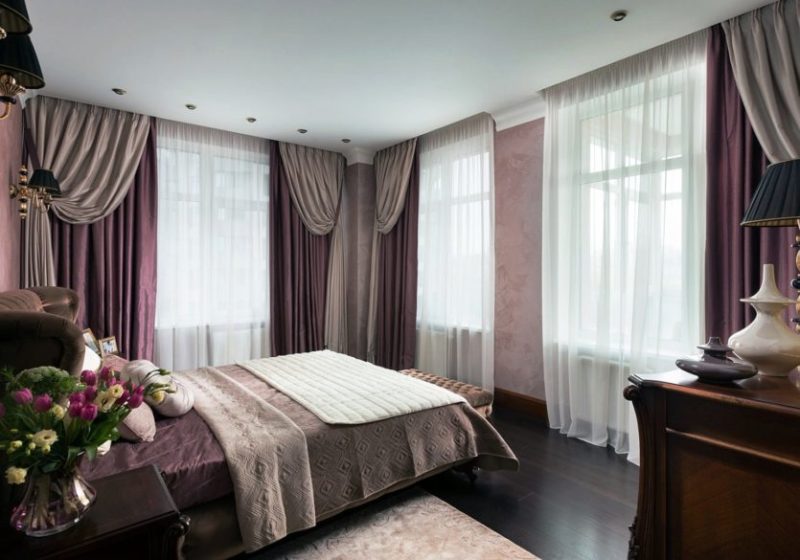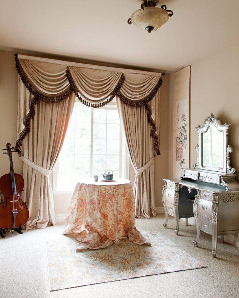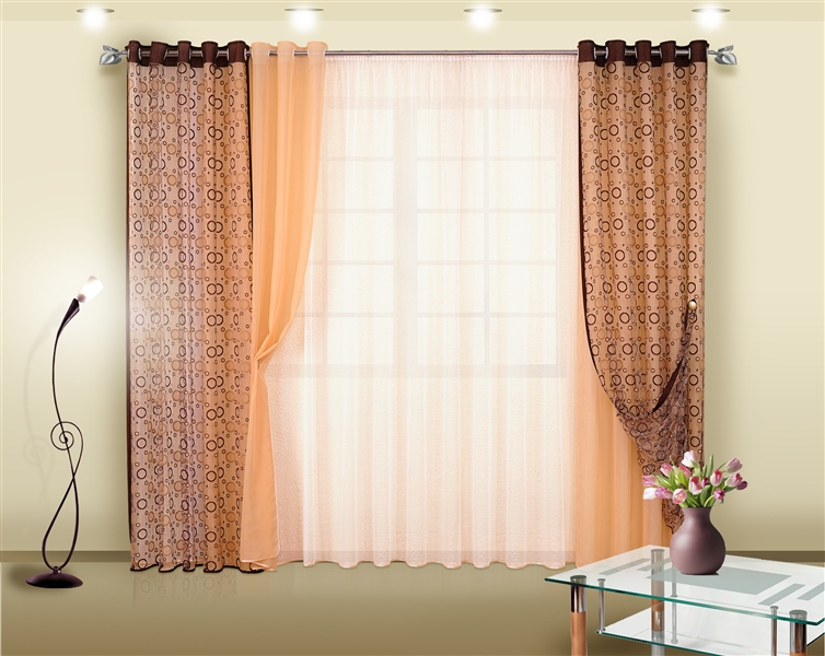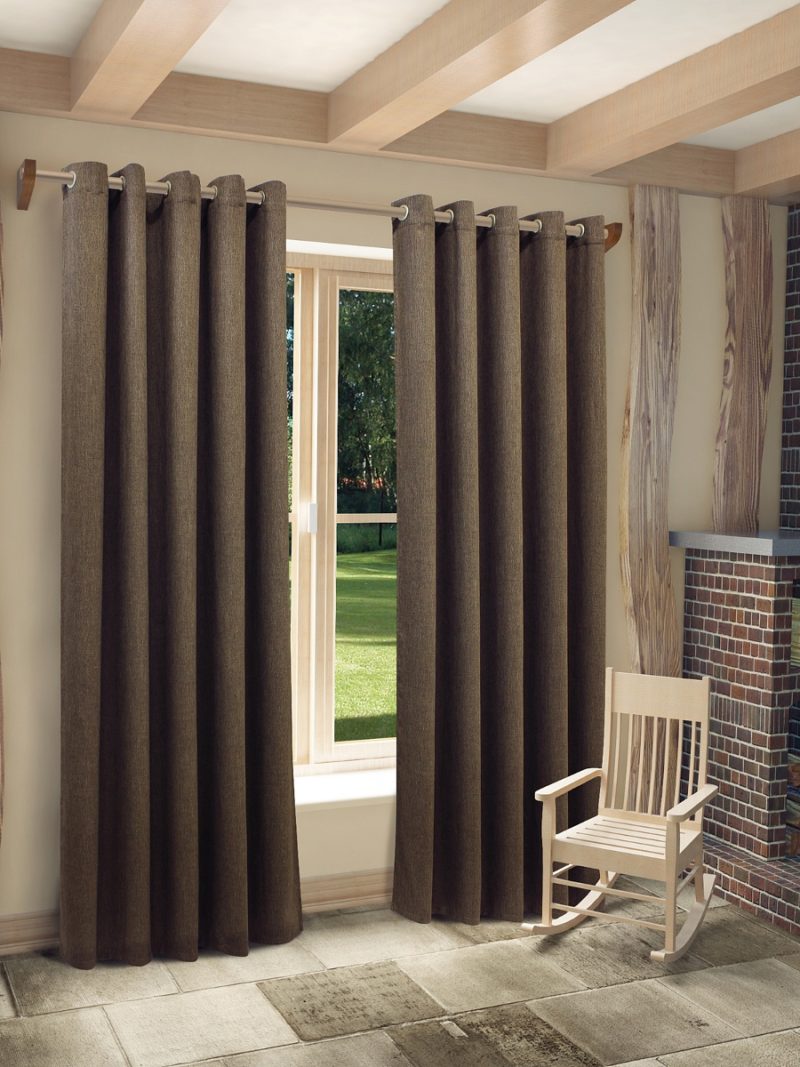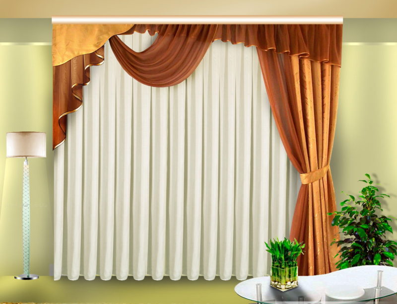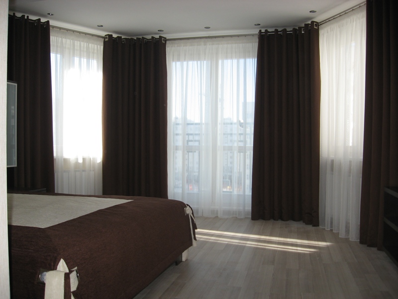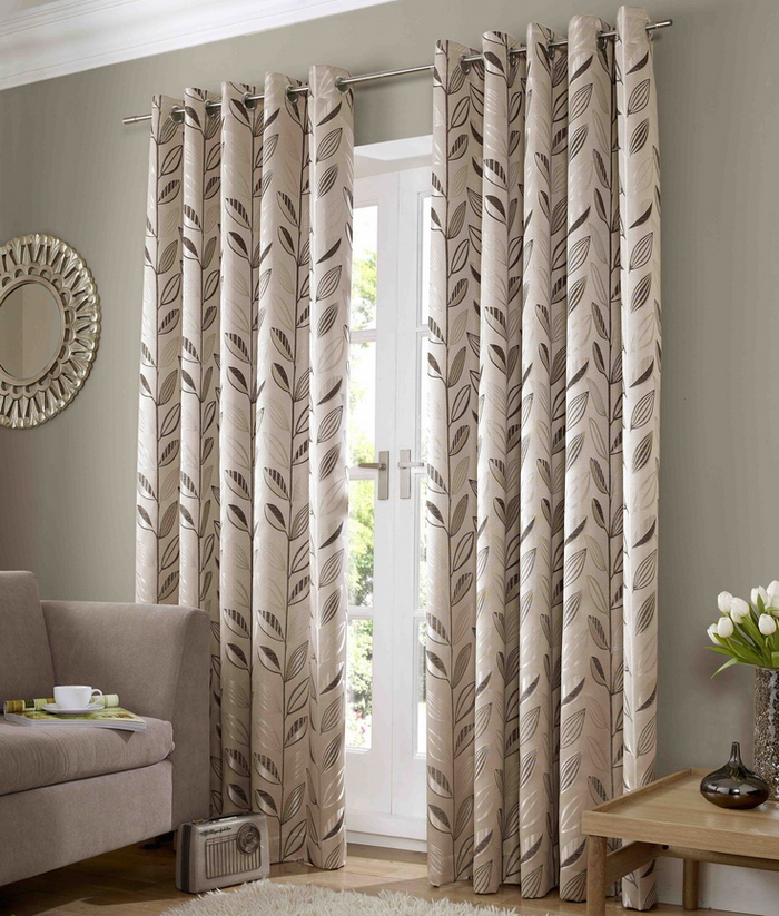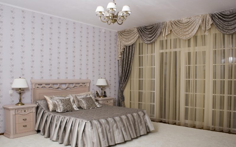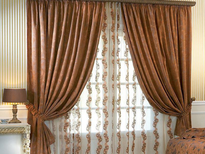 Например, если в спальной комнате преобладает оттенок бежевого цвета, то прекрасно будут смотреться портьеры всевозможных коричневых тонов.