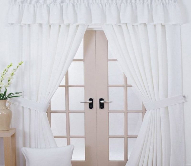 К самым романтичным и свежим цветам относится белый, это же касается и штор. Дизайн штор, выполненный в белом цвете, находится на пике популярности. Белые тяжелые портьеры на карнизе подходят почти для любого интерьера, особенно если присутствует белый нежный тюль.