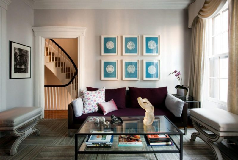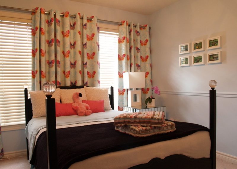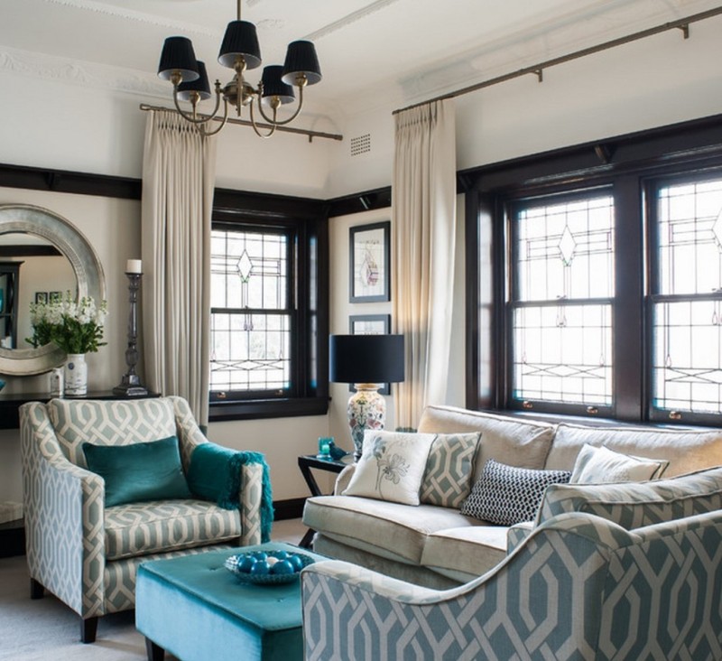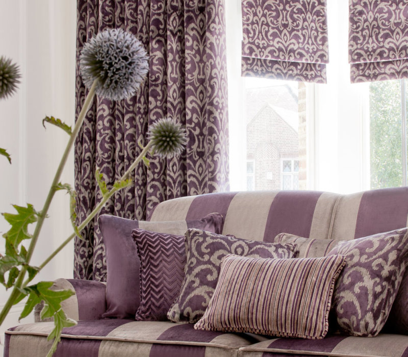 • принты на портьерах, повторяющие рисунок стен или мягкой мебели, также приветствуются;