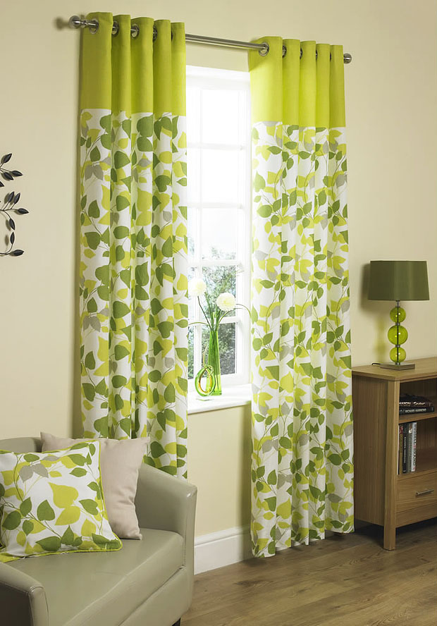 Для комнат с низким потолком подходят шторы с вертикальным рисунком любого типа: