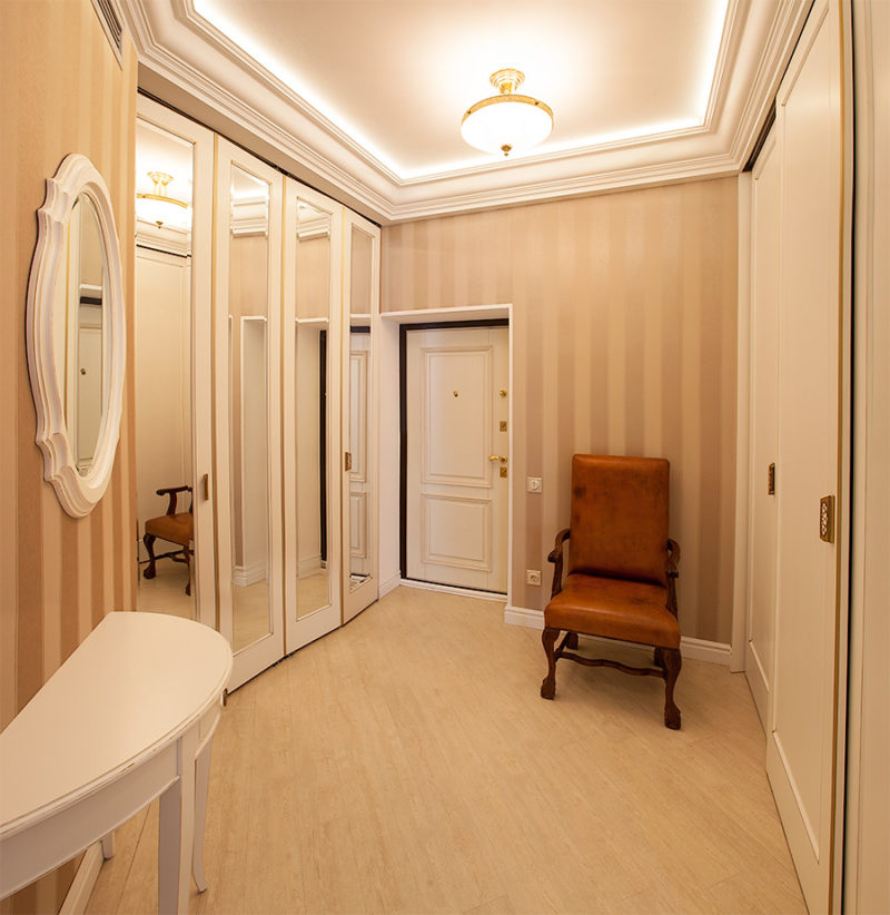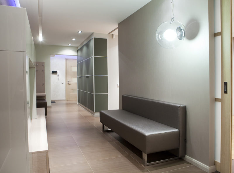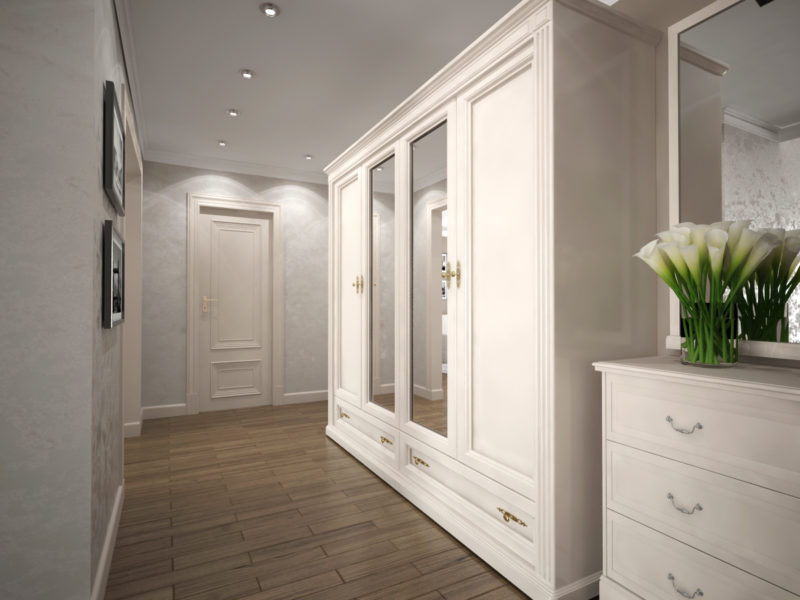 3. Чтобы пространство было более функциональным, лучше обустроить его шкафом-купе с раздвижной системой. Выбирая между шкафом-купе, изготовленным под заказ, и мебелью массового производства, лучше отдать предпочтение первому варианту. Он будет несколько дороже, но зато коридор приобретет индивидуальность;