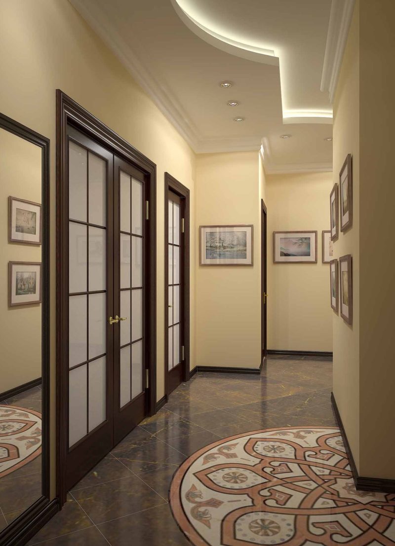 3. Темные тона и оттенки могут быть использованы лишь там, где коридор хорошо подсвечивается, а применение светлых расцветок позволит разнообразить дизайн, делая его ярче и красочнее.