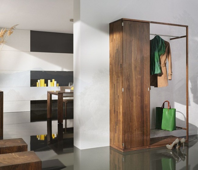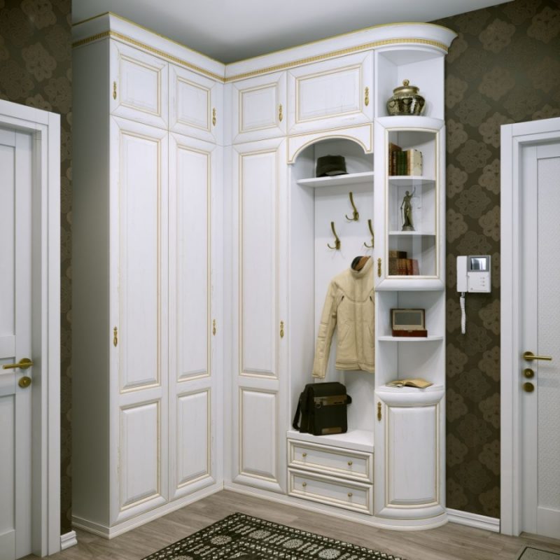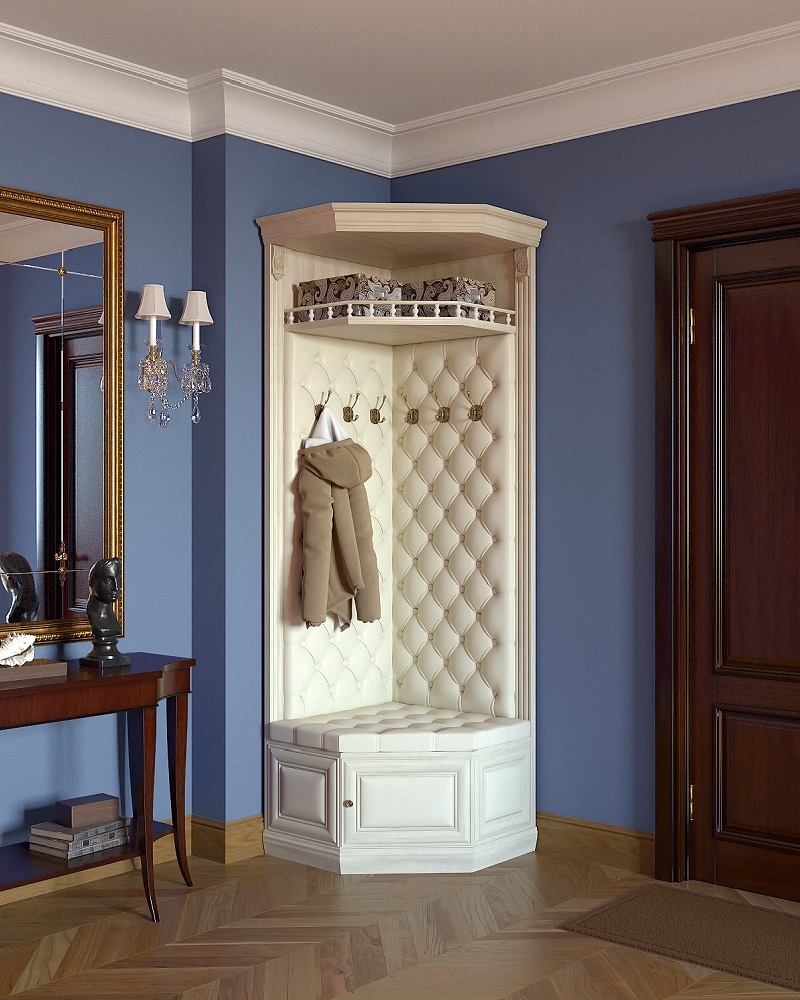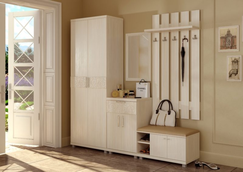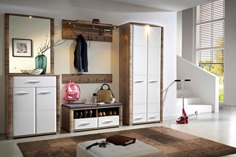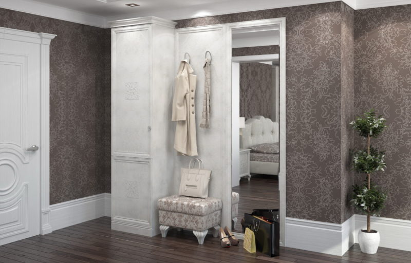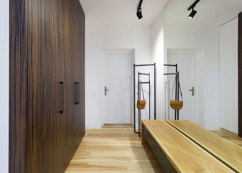 Оригинально смотрится, при наличии большой прихожей, деревянная скамейка, она придаст интерьеру изюминку. Беспроигрышный вариант шкаф-купе, он впишется в любой интерьер. А шкаф-гардеробная, если позволит площадь – идеальное решение, он удобен и вместителен.